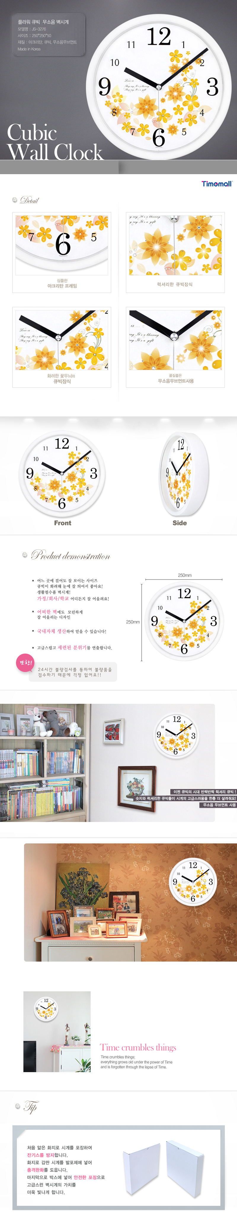 • 3276 플라워큐빅 무소음벽시계