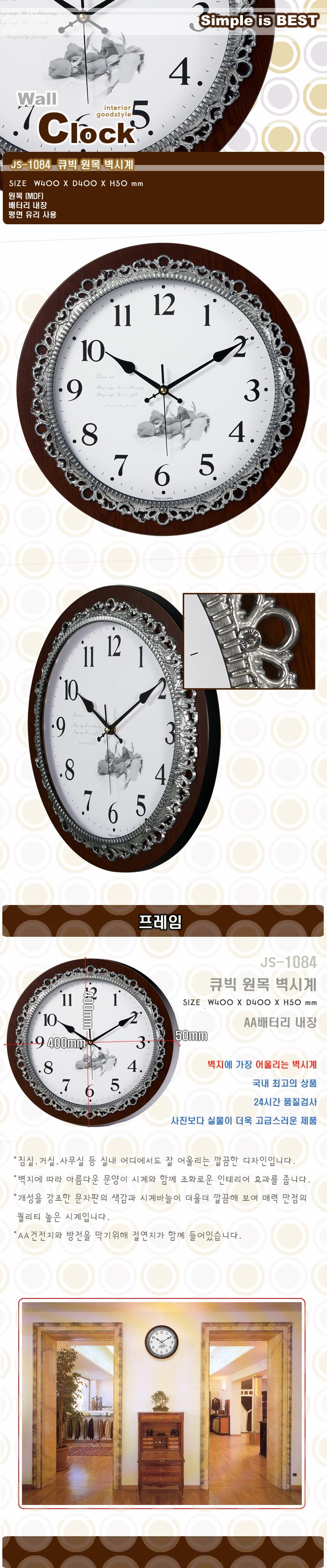 • 1084 큐빅원목 벽시계
